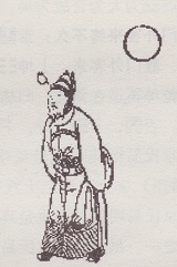 图中一人,踽踽而行,瞻我乐国也;头顶后方一日,喻日之所使也。